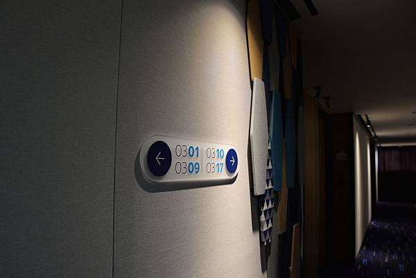 公共空間配色及設計也很有飯店的整體及一致性,以藍色、白色、橘色為搭配,