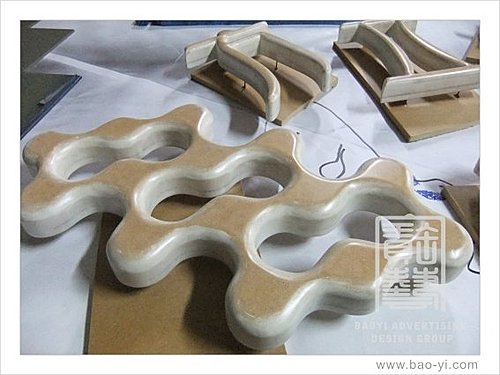 招牌-手工雕刻木頭立體字成形施作第一階段補土磨平導圓角-水立方時尚館