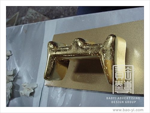 招牌-手工雕刻木頭立體字師傅專業認真貼金箔慢慢進入第四階段完成品-水立方時尚館