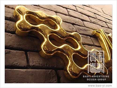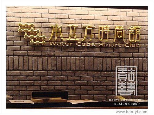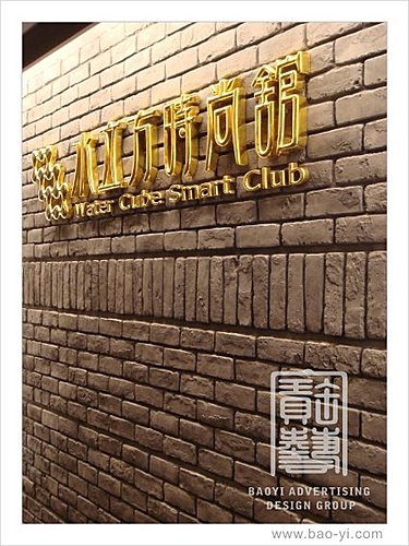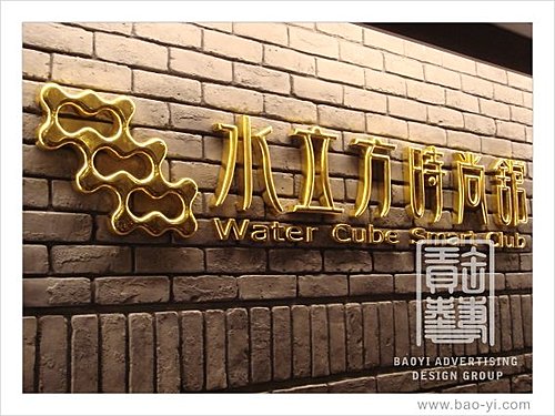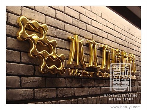 招牌設計-室內水立方時尚館手工雕刻木頭金箔立體字LOGO形象製作